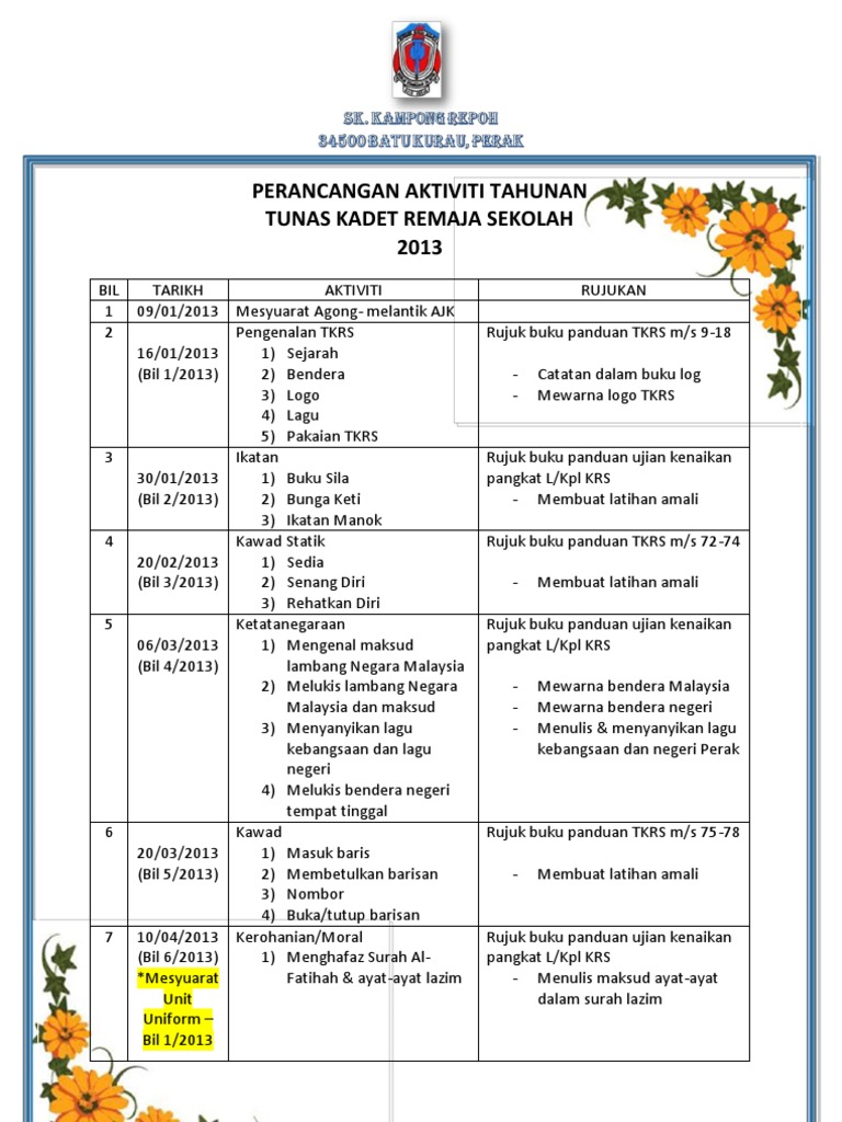 Rancangan Tahunan Aktiviti Kadet Remaja Sekolah Membalik Buku Halaman 1 11 Anyflip